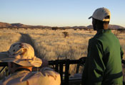 Dann begrüßt Titus John. Ein Jagdtag in der Nähe des kleinen Waterbergs beginnt. Das Jagdgebiet ist Titus bestens bekannt, da er hier seit 26 Jahren arbeitet. Die Berufsjagd ist seine Leidenschaft und sie wurde für ihn zu einem wichtigen Lebensinhalt.