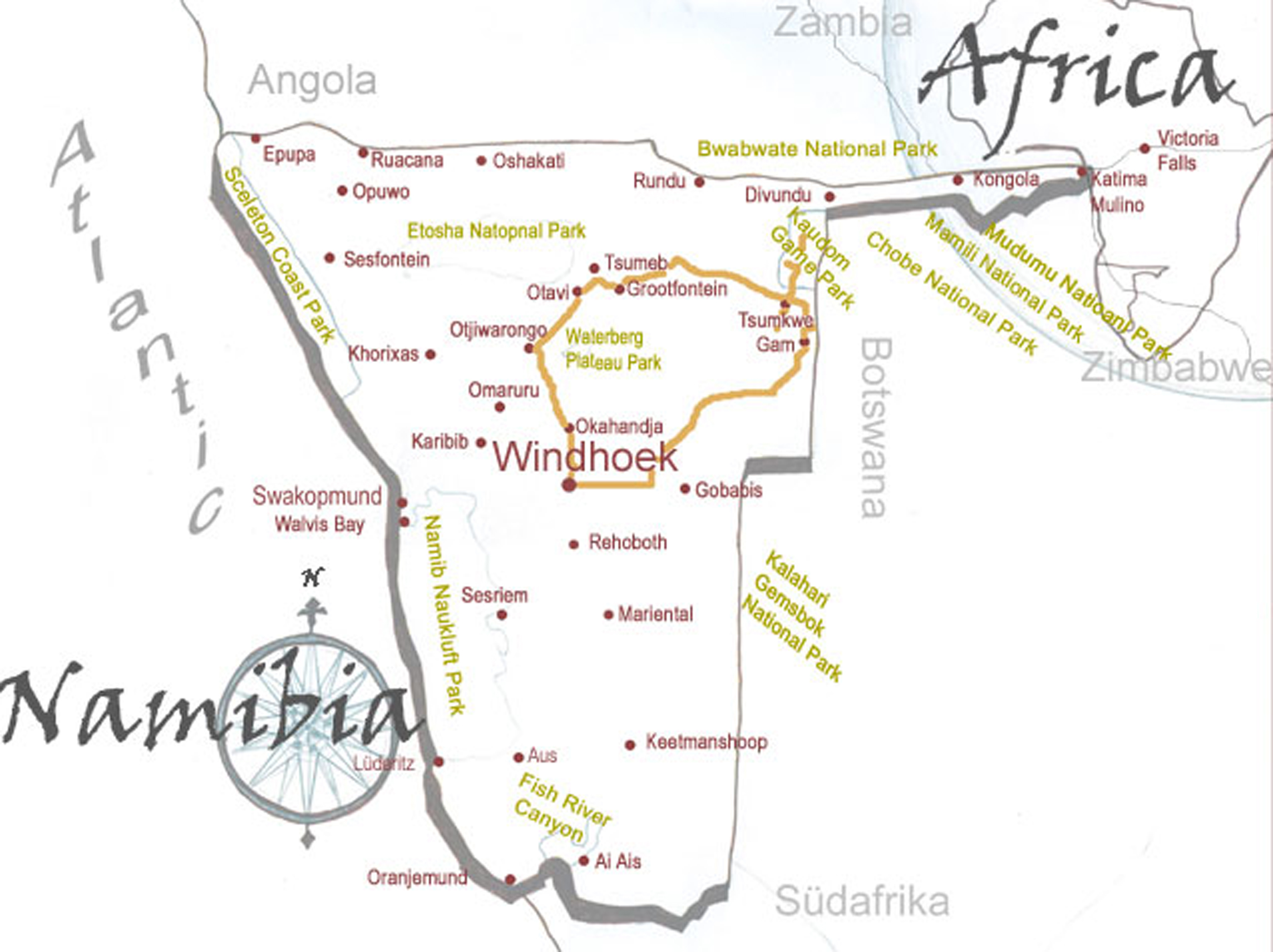 travel route - Bushman camping Safari