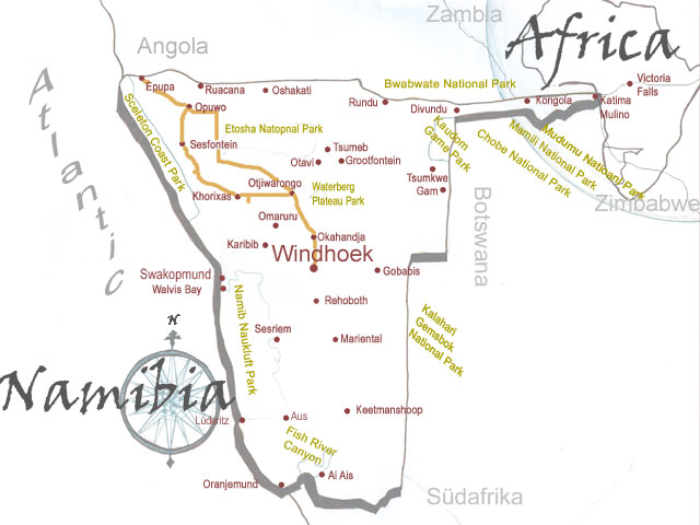 travel route - Himba short safari
