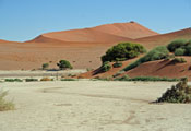 3.Tag: Am Vormittag wie Nachmittag besonders aufschlussreiche Fahrten durch ein Meer von Sand, durch leuchtend rote Dünenlandschaften, teilweise mit Gras bewachsen. Unterwegs Begegnungen mit Straussen, Springbockherden und Oryx Antilopen und Fahrt zum Kameldornbaumwald: Steinalte Kameldornbäume bestehen hier den Überlebenskampf im harten Klima der Wüste. Gigantische Szenen inmitten der unberührten Wüste warten auf den Abenteurer. Alternativ kann direkt von Ort ein Rundflug über das Dünenmeer der Namib Wüste, den Kuiseb Canyon und dem Sossusvlei gebucht werden.