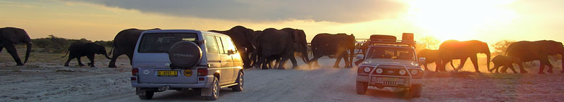 4.Tag: Beim heutigen durchqueren des Parks legen wir kurze Pausen an den verschiedenen Wasserstellen ein. Zum Mittag Ankunft im staatlich geführten Halali Rest Camp. Das Moringa Wasserloch direkt am Camp hat häufig Elefanten die dort zur Mittagszeit trinken und ein Bad nehmen. Am Nachmittag weitere Wildbeobachtungen in dem Gebiet und an den Wasserstellen um das Halali Camp herum. Fahrt an den Rand der Etosha Pfanne. Hu Berry prägte 1979 die ausdruckvollste Übersetzung des Namens Etosha: „großer Platz des trockenen, weißen Wassers“. Steht man am Rande der Pfanne auf einer der kleinen Anhöhen und blickt in der flimmernden Hitze hinunter in die Ebene, könnte man schwören, es sei Wasser, das dort in der Weite steht. Doch dort ist es nur die faszinierende Welt der Luftspiegelungen, die sich auftut. In guten Regenzeiten steht schon mal Wasser in der Pfanne. Die Quellen am Südrand der Etosha Pfanne ermöglichen jedoch den Tierreichtum dieses weltberühmten National Parks.