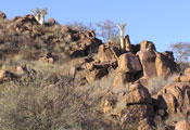 in the Kalkfeld Conservancy there are more than 25 000 ha of various cattle ranches available to hunt free ranging game. Most of these ranches were not hunted on for years. This is an interesting landscape with varying types of vegetation, e.g. thorn bush savannah, dry riverbeds, some hills and mountains as a backdrop.Accomodation: tented camp - Pictures? Click.