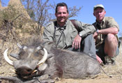 Staying in the shade of the rocks we assessed the situation. One bull was exceptional. He was feeding on a mopane, moving his head from side to side selecting the sprouting, juicy leaves, but his chest was hidden behind branches. Another old, mature bull stood closer, his horns shortened from years of scrubbing, breaking and fighting in the mopane savannah. Although he was broadside, we waited for the other bull to move on. Antoine caught his breath, steadied into a comfortable shooting position and waited. It is impossible not to become excited, but I told him to relax. “Time is on our side.” To distract him and prevent him from actually taking a shot within the next few seconds, I recited the shot placement again.